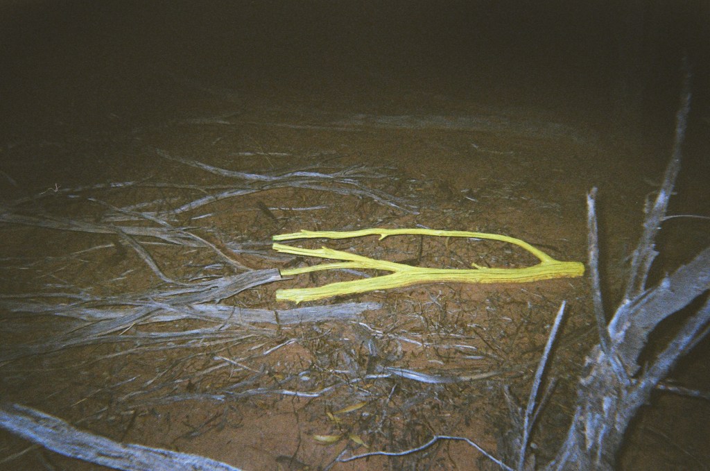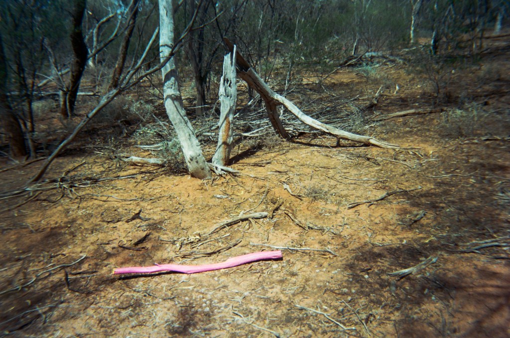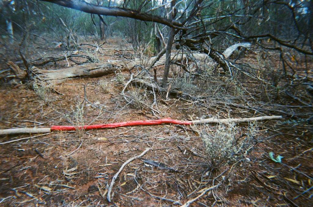 this series was designed to function as an ecological pilot experiment and an art installation. it explores paranoia as a psychic cost of the Western scientific tradition through the aesthetic of online conspiracy theories. reports of alien bodysnatching include stories of having been studied “scientifically” in ways similar to how humans study nonhuman organisms – alien abductees recount having been kidnapped, force bred, probed, maimed, or otherwise manipulated before being returned home. here, i cut, kidnapped, altered, replaced, and photographed parts of dead individuals (trees) in the environment in Yamatji Country in western australia as a part of a scientific research project.